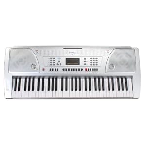 Jamais il était tant facile de jouer le synthétiseur. Cent échantillons différents, 100 rythmes et la fonction accompagnement garanti un succès scolaire vite. À l'aide de la fonction IntelligentGuide on peut apprendre les huit chansons démos intégrées note par note. En outre, une fonction du FunKey 61 rend possible que votre enfant peut enregistrer les pièces de musique complètes avec d'accompagnement et les passer de nouveau. À l'aide du bouton de transposition il est très simple jouer les morceaux d'une tonalité difficile. Encore, vous avez la possibilité de programmer vos propres rythmes et comme ça laisser libre cours à votre créativité.